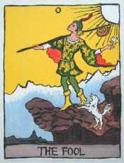 With the first of April come all the fools—such wonderful company! Appropriately enough, the earliest recorded association between April 1 and foolishness can be found in Chaucer‘s Canterbury Tales (1392), though the origins go back much deeper. In the Tarot deck, the Fool is the spirit in search of experience. He represents the mystical cleverness bereft of reason within us, the childlike ability to tune into the inner workings of the world. The sun shining behind him represents the divine nature of the Fool’s wisdom and exuberance, holy madness or crazy wisdom.