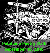 Once again, downtown Petaluma will be host to a day of poetry readings on Sunday, September 18, starting at the Seed Bank at 11:00 a.m. and ending at Aqus Café from 6:00 to 8:00 p.m. Here’s a partial list of featured readers: Barbara Brauer, Nina Lindsay, Dave Seter, Ed Mycue, Cathryn Shea, Duane Big Eagle, Kevin Gunn, Juanita Martin, Daniel McKenzie, Al Young, A.D. Winans, Geri Digiorno, Rebecca Foust, Mike Tuggle, Iris Jamahl Dunkle, and more. Emcees include Terry Ehret, Sande Anfang, Carl Macki, Gwynn O’Gara, Phyllis Meshulam and David Magdalene. Venues and reading details at: www.petalumapoetrywalk.org/2016_poetrywalk_schedule.html