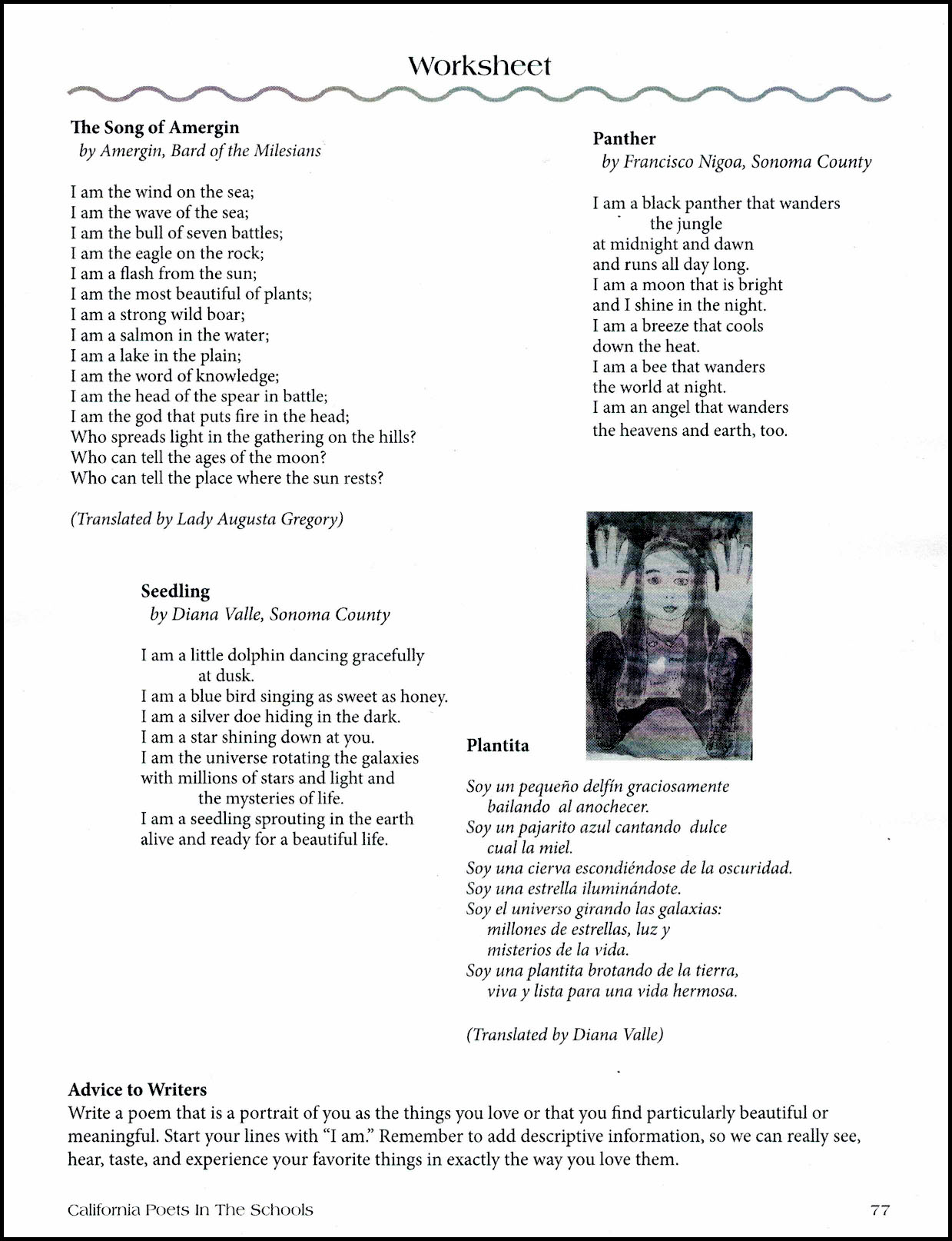 Not only can you hear Zoya read and the other two talented finalists, Phoebe Price (Sonoma Academy) and Julia Green (Santa Rosa High School), at Saturday night’s 7 pm open mic (and maybe share something yourself), but you can take writing workshops with Jane Hirshfield and Jason Bayani and teaching workshops with Cal Poets teachers. You can also hear Zoya at 12 noon on Sunday in conversation with present and past poets laureate of Ventura County. This is an amazing opportunity to sample the riches of Cal Poets’ offerings without having to leave your home. It’s free, but with no transportation or housing costs, you could consider making a donation to this very worthy organization that gets kids all around the state writing poetry. The organization has done so for 56 years, generating about six million poems from over one million students.